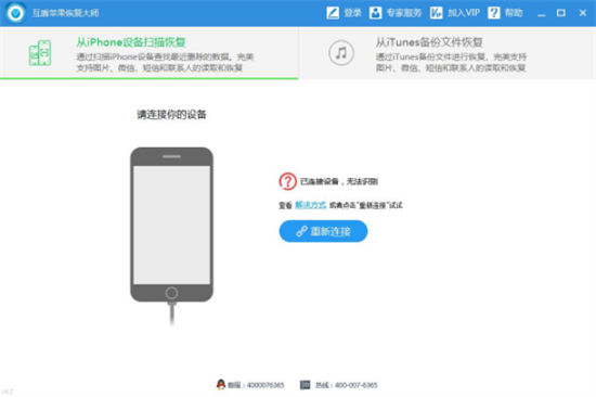 2、通过Lightning数据线接入设备,自动识别后开启深度扫描