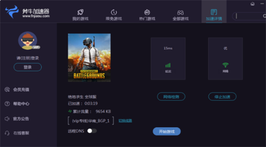 在套餐管理界面选择弹性计费模式,系统将自动记录有效加速时长。游戏结束后,通过状态栏图标或客户端界面均可一键暂停服务,暂停期间不计入使用时长。