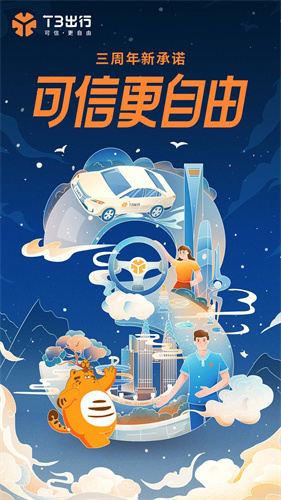 T3出行是由南京领行科技推出的智慧出行服务平台,依托自主研发的车联网系统与规范化的运营管理,为用户提供高效安全的移动出行解决方案。平台通过整合优质运力资源与智能调度技术,构建起覆盖多场景的出行服务体系。