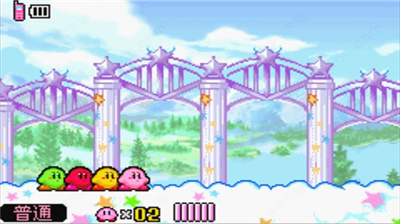 游戏采用动态操控体系,移动中可触发跳跃技能精准打击敌人。角色进化系统允许玩家通过吞噬特定敌人获取专属技能,更支持最多四人协同作战模式。独创的镜像操控机制让玩家可同时指挥四个卡比分身,既可用于破解机关谜题,又能实施战术包抄,大幅提升战斗维度。