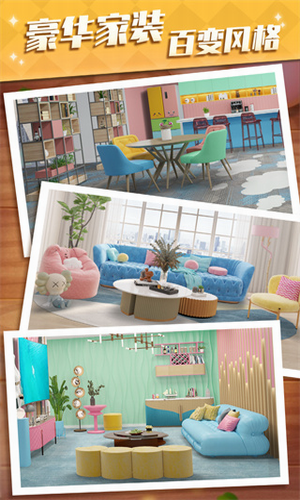 1、独创装修消除双线机制,每完成10次消除可获得设计灵感值,用于解锁新家具套装