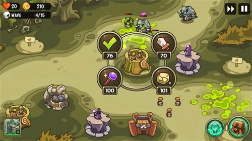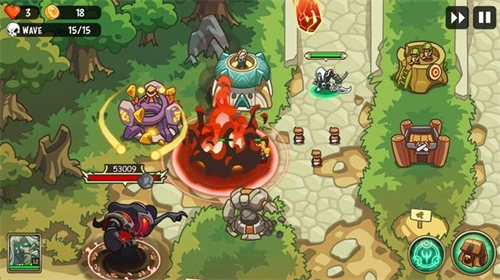 3、动态战场机制:精灵密林中的迷雾视野、死亡沼泽的移动减速、冰冻山脉的暴风雪等环境要素,要求玩家实时调整防御策略。