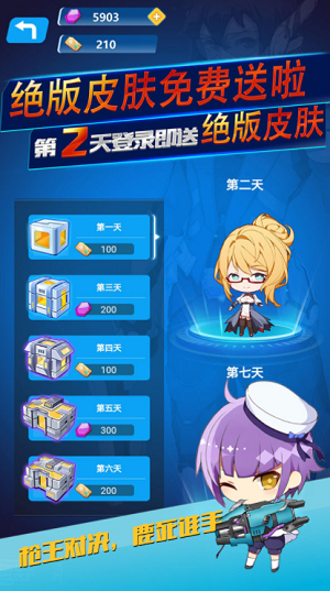 2.新手七日签到赠送限定武器涂装,连续登录获取成长资源