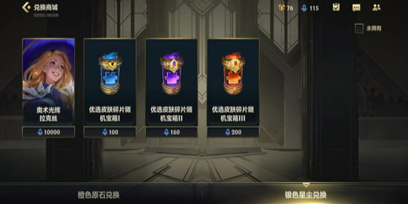 当前版本开放的【优选皮肤碎片随机宝箱】分为三个层级: