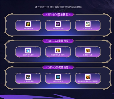当角色成长等级突破30级时,可兑换「领域征服者武器装扮」;达到50级解锁「幻影光环特效」;满级60级领取「希洛克使徒宠物蛋」
