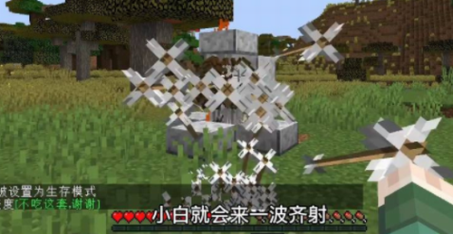 5、测试阶段保持20格安全距离,穿戴全套钻石护甲进行设备校验。当触发范围内出现敌对生物时,箭矢集群将形成交叉火力网,实测显示该配置可瞬秒普通僵尸,对铁傀儡等重型单位也能造成持续硬直。