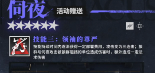 一技能【领袖的呼唤】突破传统费用回复模式,在瞬时获得部署资源的同时,直接强化狼群作战规模。该技能在战局关键阶段可同时解决费用压力与战线强化两大核心需求。