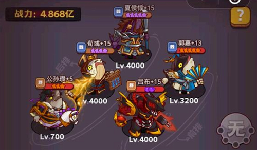 当遭遇周瑜、诸葛亮等具备全体普攻特性的敌将时,推荐采用:公孙瓒+华佗+荀彧+吕布+诸葛亮组合