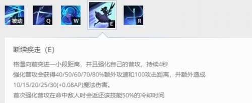 位移技能附带三重增益:60%攻速加成、100码攻击距离扩展、普攻附带魔法伤害。建议在换血时优先使用,其增加的攻击范围可帮助规避敌方反击,搭配纳什之牙时能显著提升持续输出能力。
