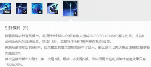 三段式弹幕每次造成递增伤害(80/180/280+30%AP),首段附带50%减速效果。建议在E技能位移后衔接使用,注意每次释放需间隔8秒,理想情况下应在6秒内完成三次施放。