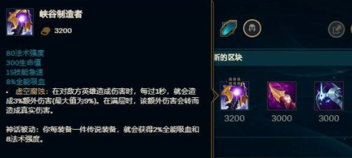 核心三件套选择遵循攻守平衡原则:峡谷制造者提供15%全能吸血与神话被动,纳什之牙转化40%攻速为AP加成,星界驱驰带来30技能急速。后续可补中亚沙漏增强团战容错,最终装备选择视局势搭配恶魔之拥或自然之力。