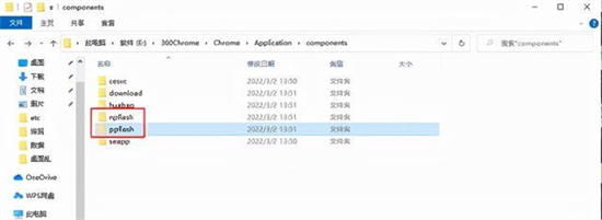 在桌面定位360极速浏览器快捷方式,通过右键菜单选择【打开文件所在位置】访问安装目录,在系统文件中定位components文件夹,分别清除名为npflash与ppflash的组件存储目录