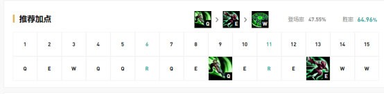 推荐采用主Q副E的加点方案,6/11/16级优先升级大招。Q技能作为核心输出手段,每级提升可有效缩短冷却时间并增加基础伤害。副升E技能可增强护盾吸收值,配合符文系统显著提高生存能力。这种加点模式在对抗远程消耗型英雄时效果尤为突出。
