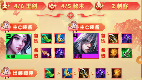 2、羁绊协同效应:建议激活4玉剑+4秘术核心组合,灵活切换6玉剑/5秘术进阶形态,辅以2宗师+2明昼+2刺客强化攻防体系