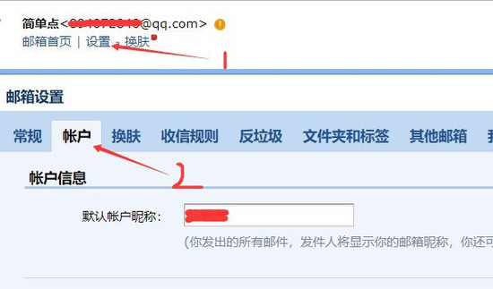2、进入邮箱管理界面后,点击右上角【设置】选项,在弹出的功能菜单中选择【账户管理】模块,操作指引如图所示: