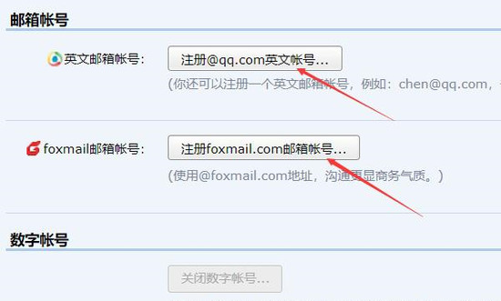 3、在账户设置页面可见多种邮箱类型选项,用户可根据实际需求选择注册纯数字邮箱、英文邮箱或商务邮箱。重点推荐Foxmail商务邮箱格式,其专业形象更适用于职场沟通场景,具体配置界面参考下图: