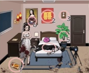 首先转向左侧墙壁的电闸装置,多次点击后会出现新郎角色模型。与其进行三次互动可获得重要道具红色喜帖,仔细观察喜帖边角的烫金纹样,会发现由花瓣组成的数字图形,经解析后确认首位密码为5。