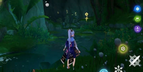 沿发光菌毯向洞窟深处移动,在分岔口选择右下方位继续前进。经过三处四叶草传送锚点后,需借助风场上升至中层平台。第二符文位于悬浮石柱顶端,建议使用钟离岩柱或温迪风场进行触碰激活。