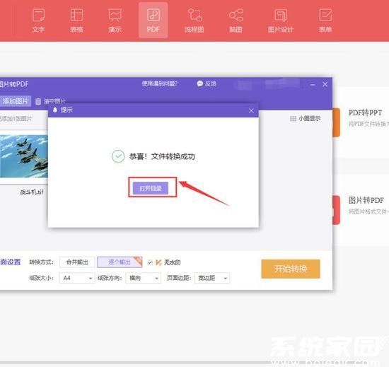 转换完成后系统将弹出操作成功提示,点击【打开目录】即可查看生成的PDF文档,此时可验证文件内容的完整性与格式准确性。