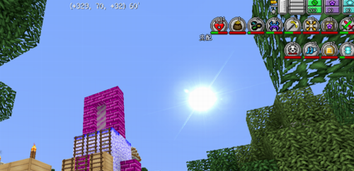 2. 使用远古岩石沿垂直方向堆砌立柱,左右两侧各保留2格间距